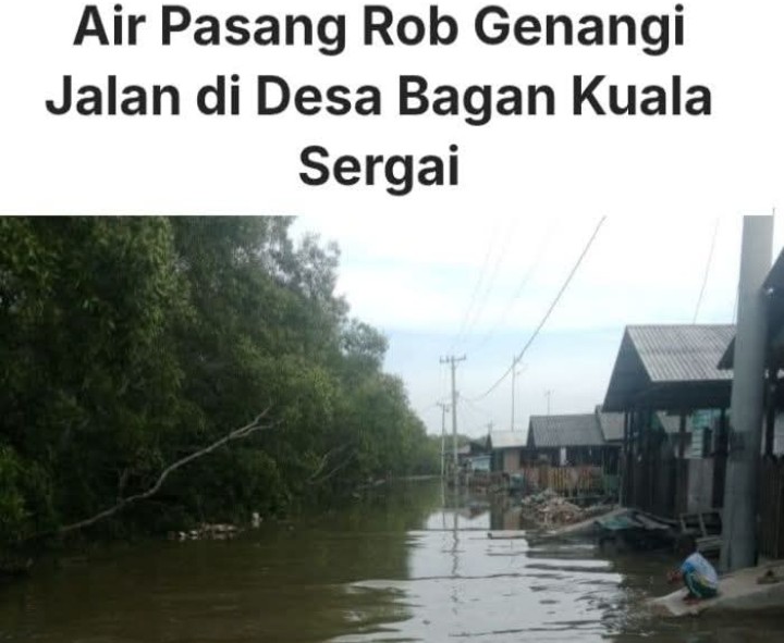Serdang Bedagai discoverynews.id – Air laut pasang (rob) kembali menggenangi ruas jalan di Dusun I dan Dusun II, Desa Bagan Kuala, Kecamatan Tanjung Beringin, Kabupaten Serdang Bedagai (Sergai), Sabtu (18/04/2026) sekitar pukul 16.45 WIB.